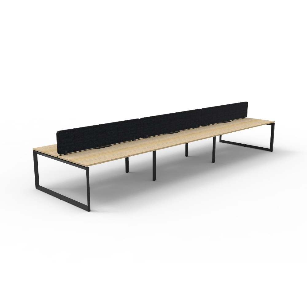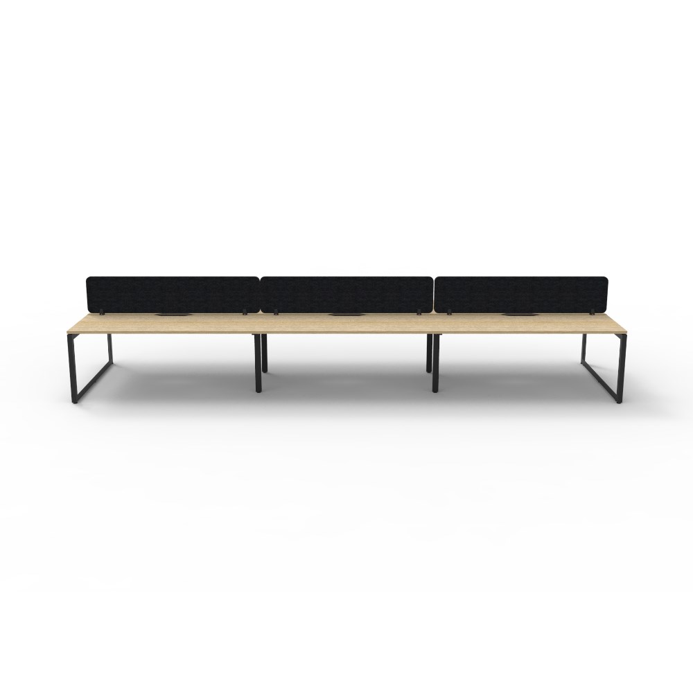 • 6 person double sided workstation with Natural Oak top and Black Satin frame, Black Eco screen.