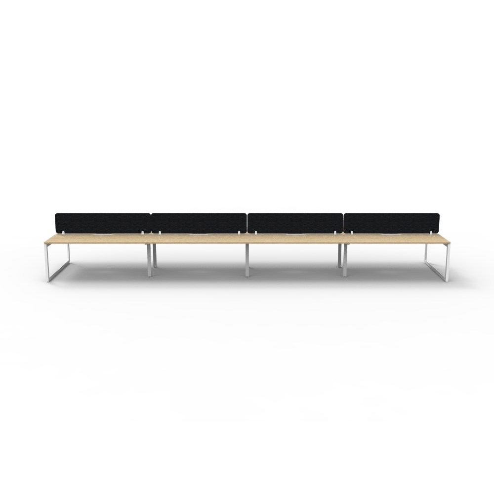• 8 person double sided workstation with Natural Oak top and White Satin frame, Black Eco screen.