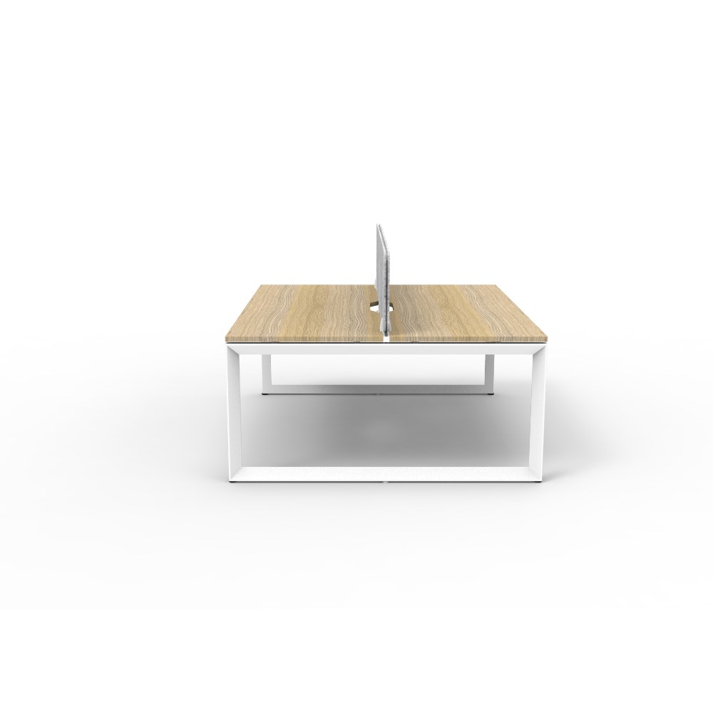 • 2 person double sided workstation with Natural Oak top and White Satin frame, Grey Eco screen.