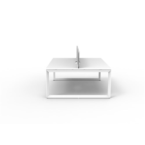 • 2 person double sided workstation with White top and White Satin frame, Grey Eco screen.