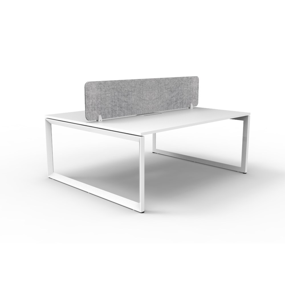 • 2 person double sided workstation with White top and White Satin frame, Grey Eco screen.