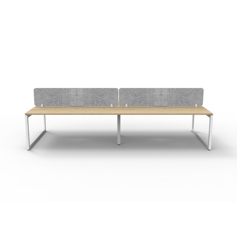 • 4 person double sided workstation with Natural Oak top and White Satin frame, Grey Eco screen.