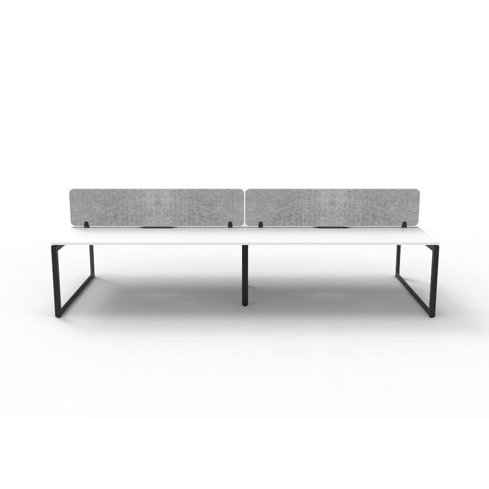 • 4 person double sided workstation with White top and Black Satin frame, Grey Eco screen.