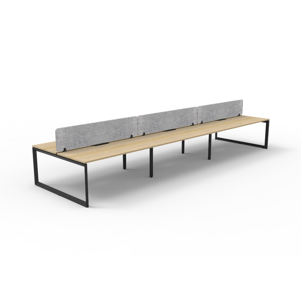 • 6 person double sided workstation with Natural Oak top and Black Satin frame, Grey Eco screen.