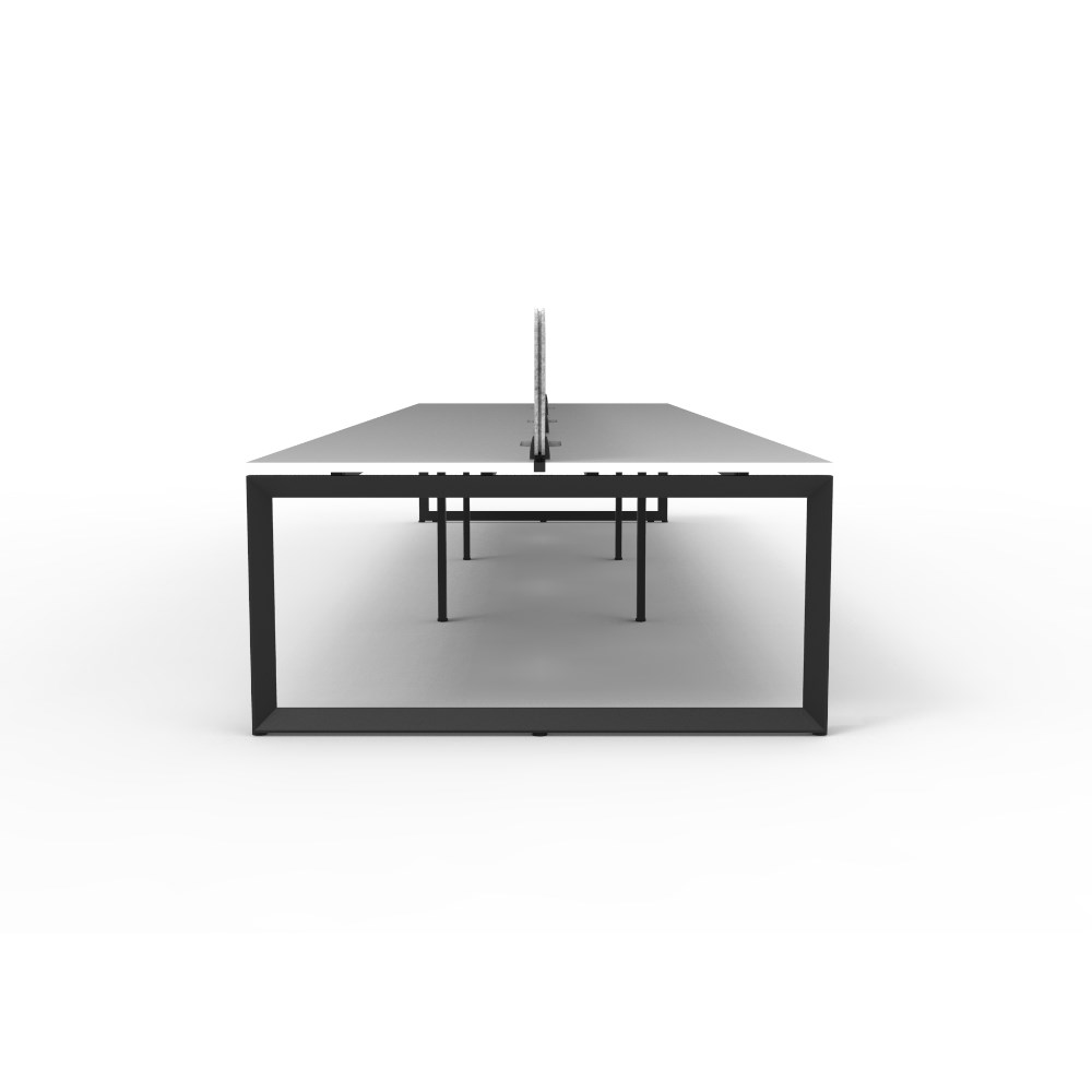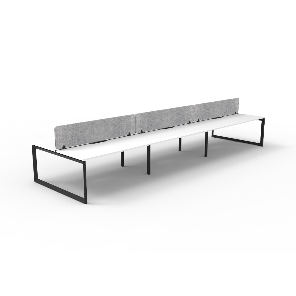 • 6 person double sided workstation with White top and Black Satin frame, Grey Eco screen.