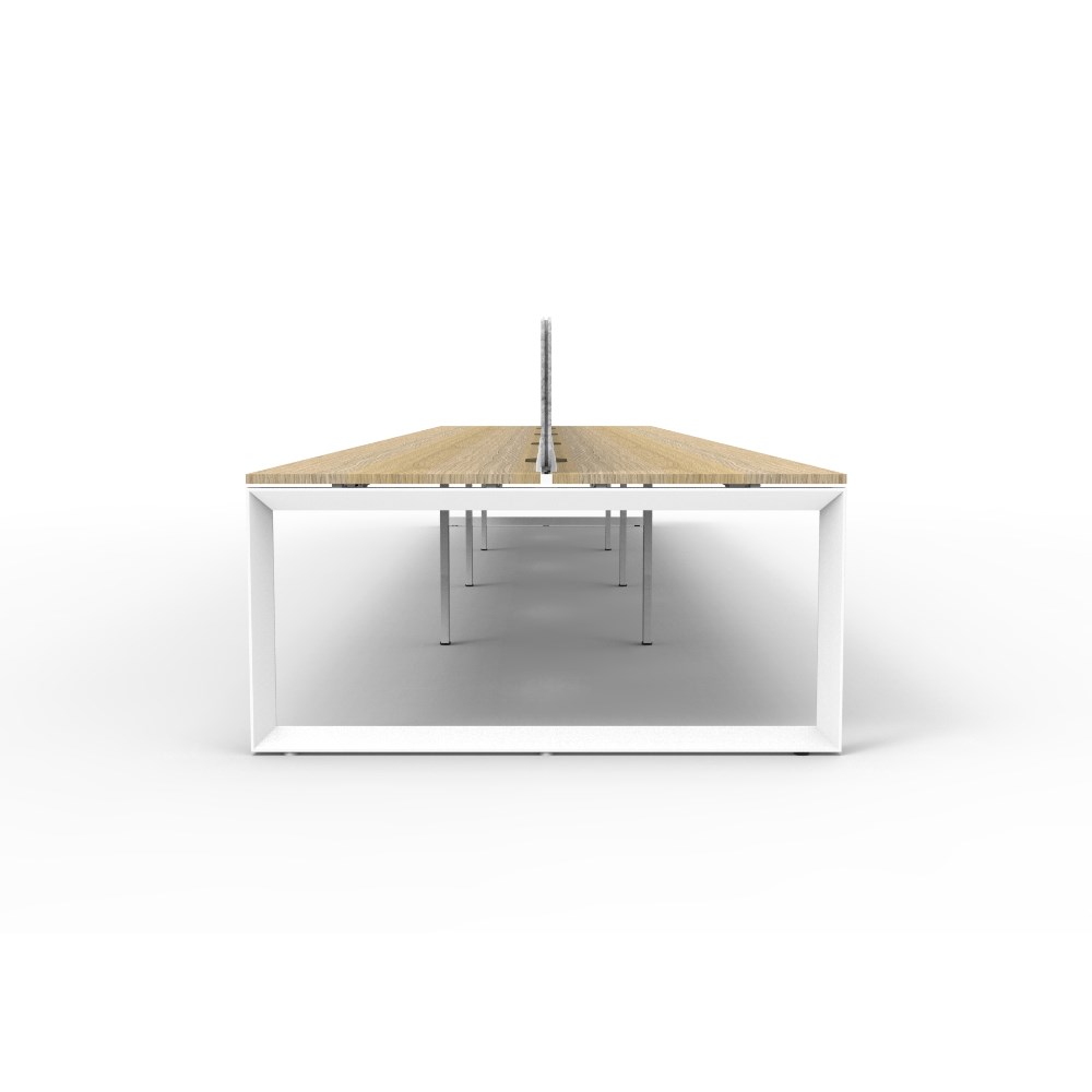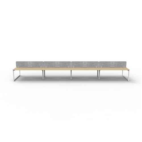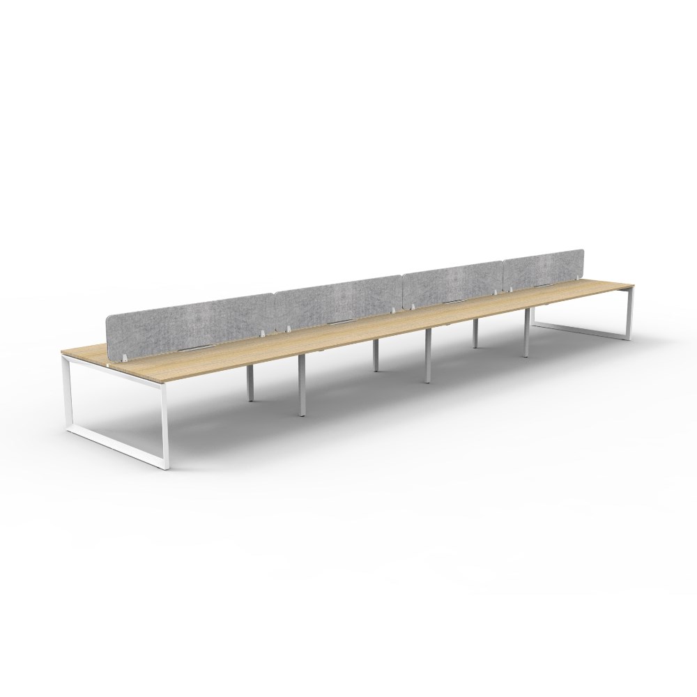 • 8 person double sided workstation with Natural Oak top and White Satin frame, Grey Eco screen.