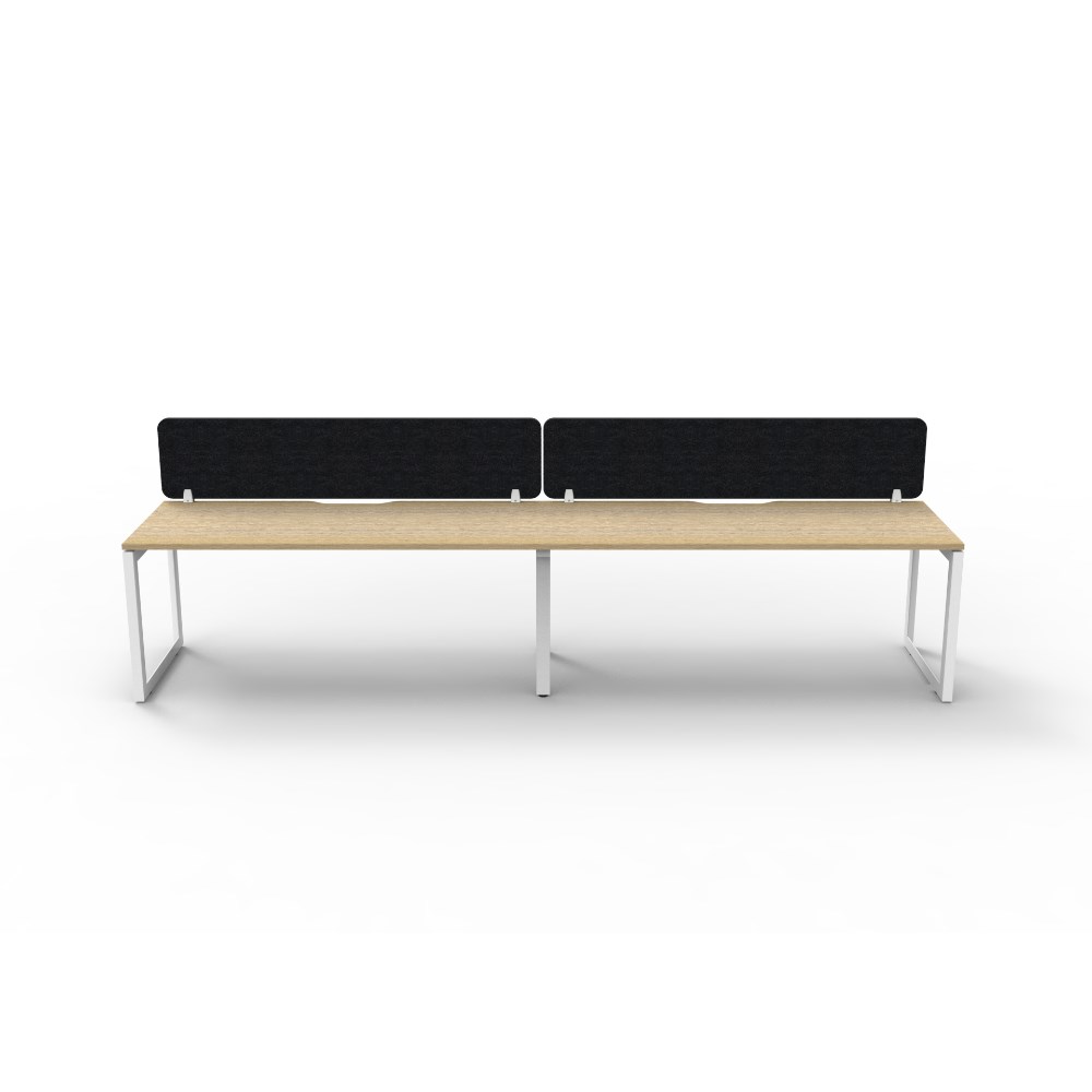• 2 person single sided workstation with Natural Oak top and White Satin frame, Black Eco screen.