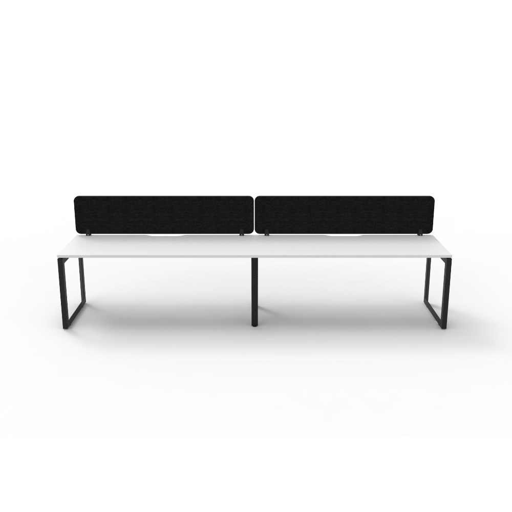 • 2 person single sided workstation with White top and Black Satin frame, Black Eco screen.