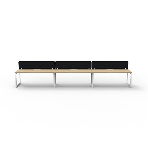 • 3 person single sided workstation with Natural Oak top and White Satin frame, Black Eco screen.