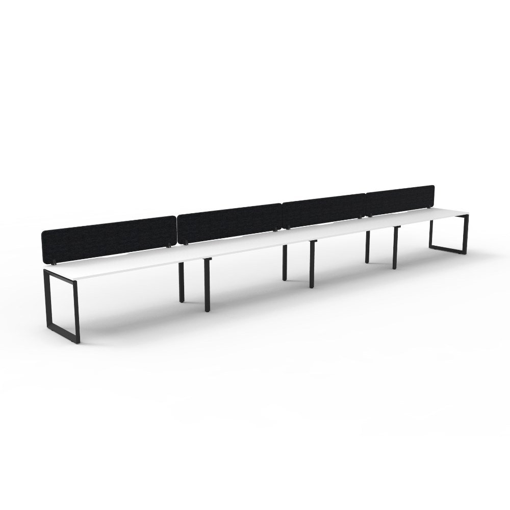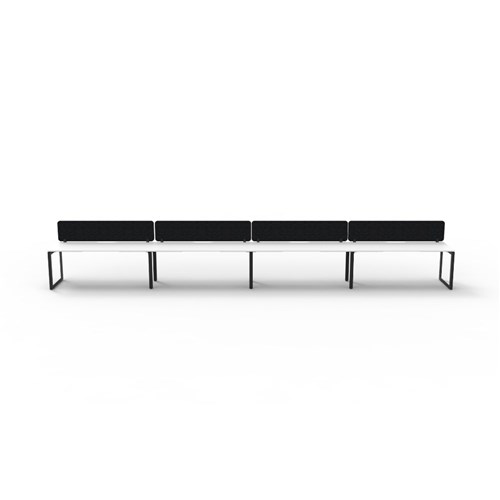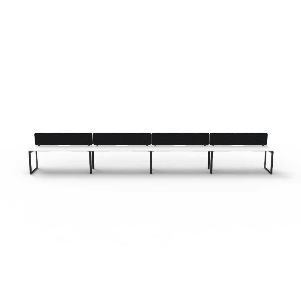 • 4 person single sided workstation with White top and Black Satin frame, Black Eco screen.