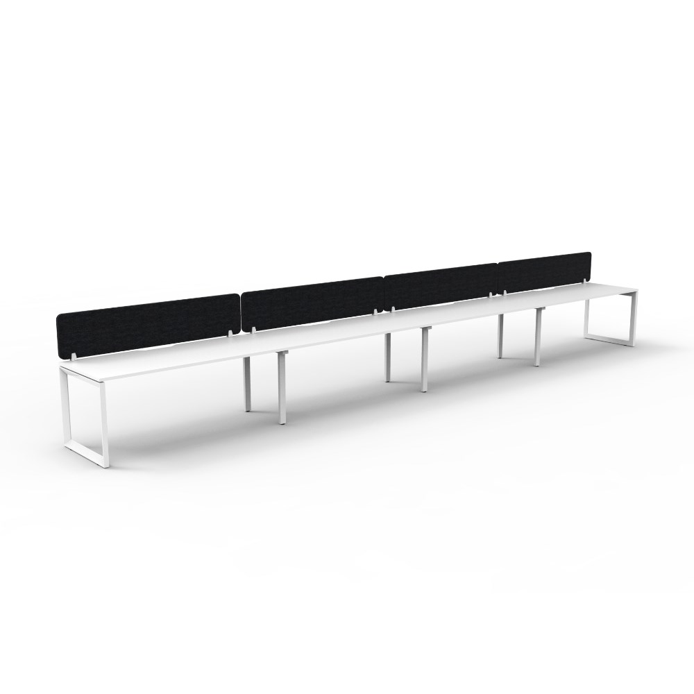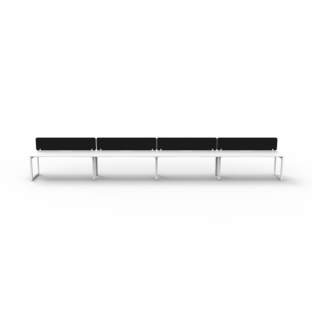 • 4 person single sided workstation with White top and White Satin frame, Black Eco screen.