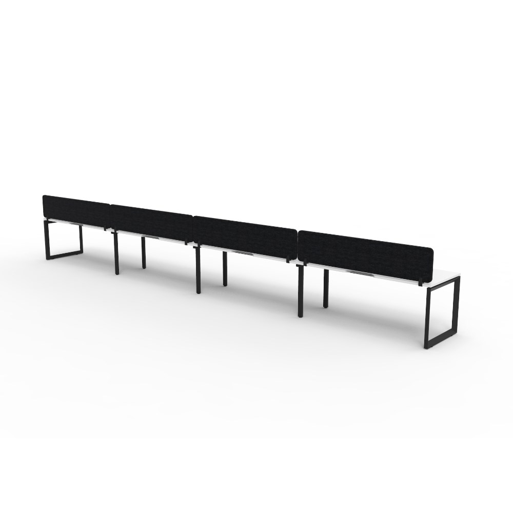 • 4 person single sided workstation with White top and Black Satin frame, Black Eco screen.