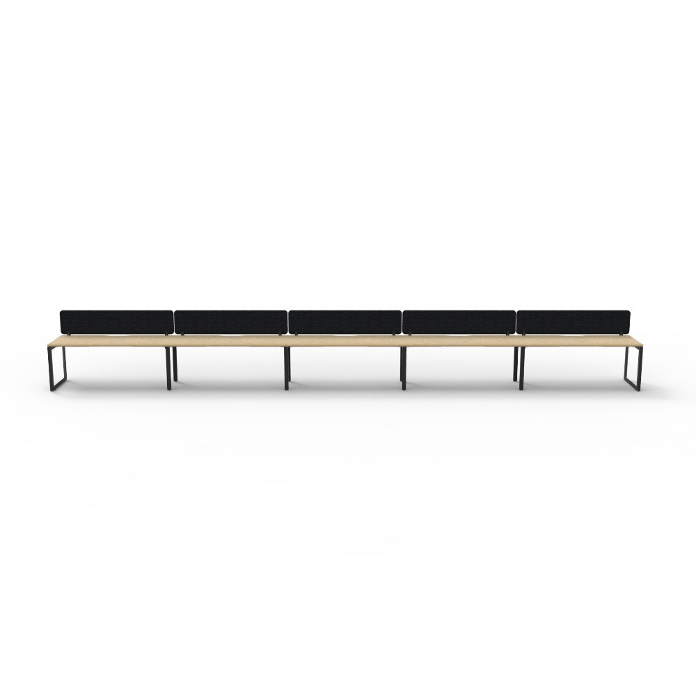 • 5 person single sided workstation with Natural Oak top and Black Satin frame, Black Eco screen.