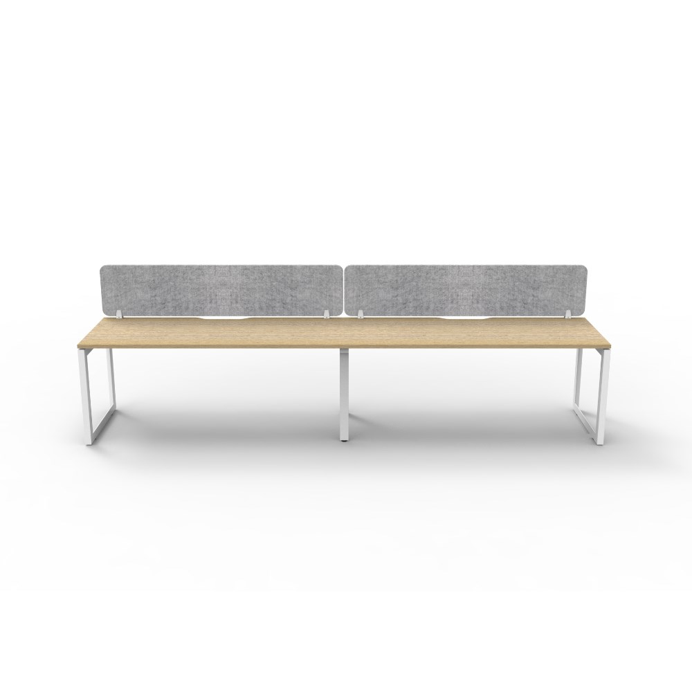 • 2 person single sided workstation with Natural Oak top and White Satin frame, Grey Eco screen.