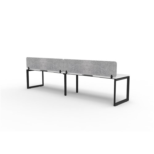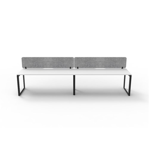 • 2 person single sided workstation with White top and Black Satin frame, Grey Eco screen.