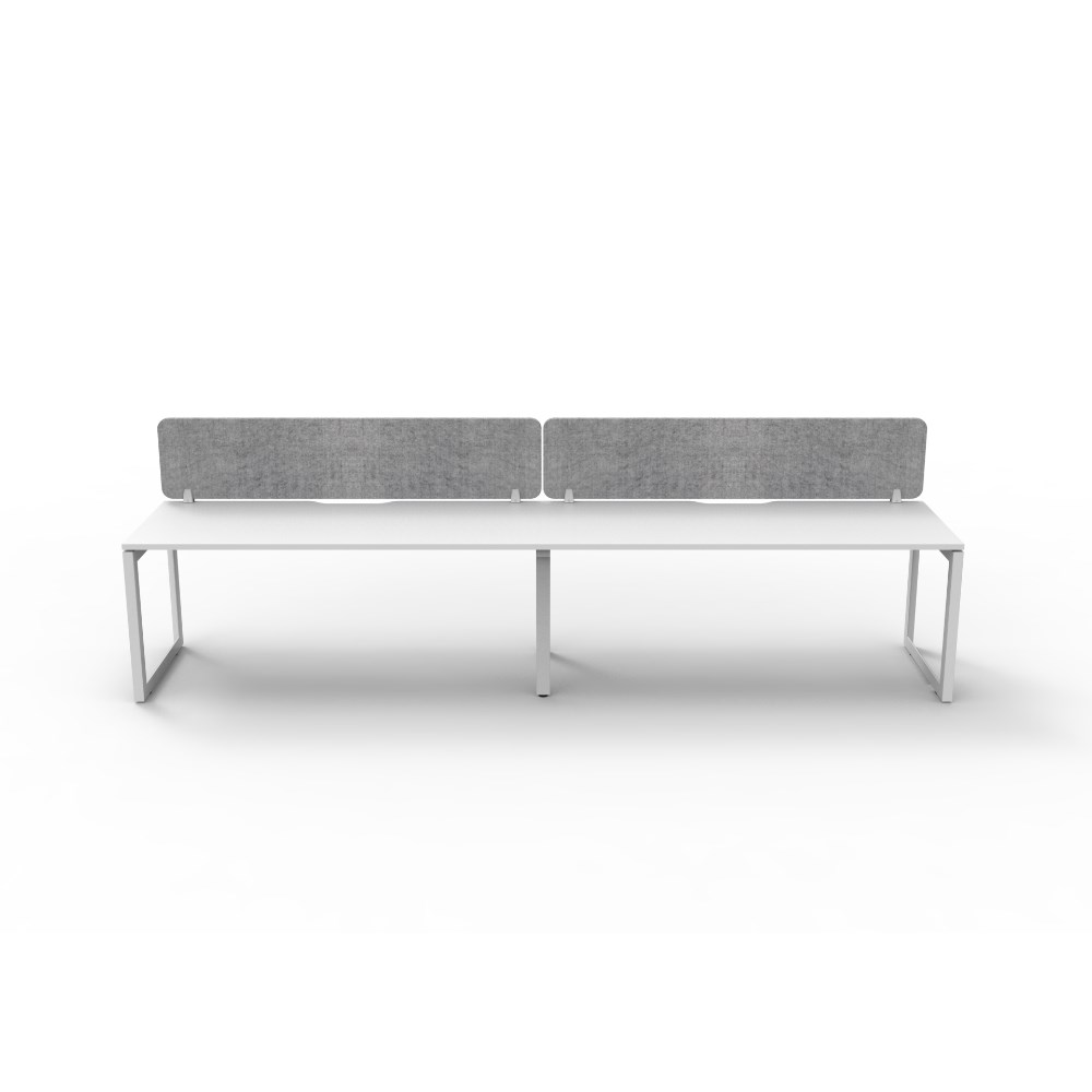 • 2 person single sided workstation with White top and White Satin frame, Grey Eco screen.
