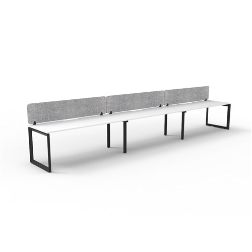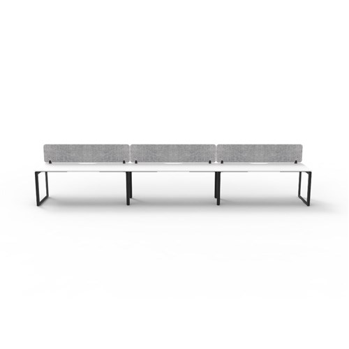 • 3 person single sided workstation with White top and Black Satin frame, Grey Eco screen.