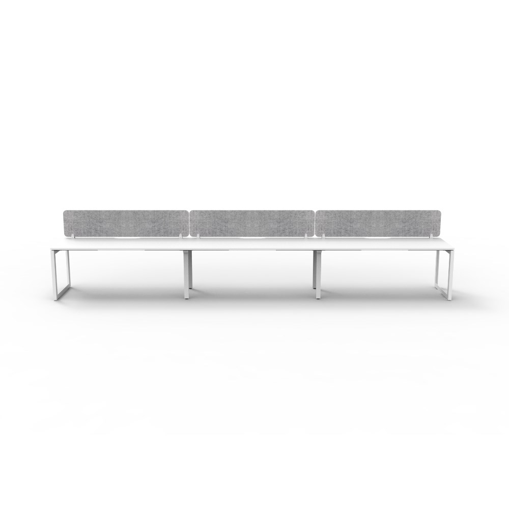• 3 person single sided workstation with White top and White Satin frame, Grey Eco screen.