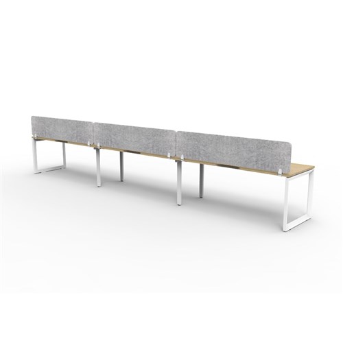 • 3 person single sided workstation with Natural Oak top and White Satin frame, Grey Eco screen.