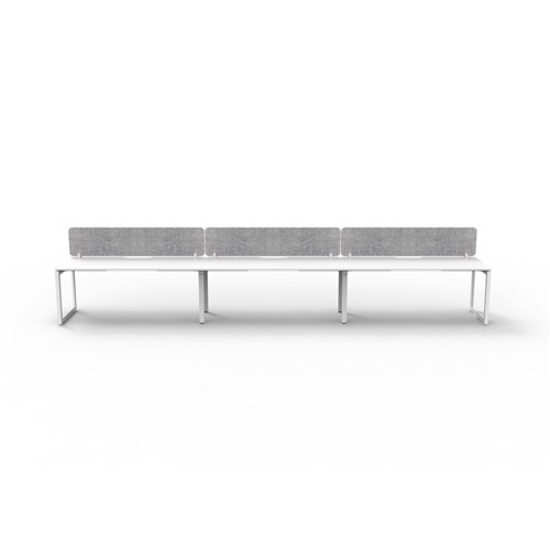 • 3 person single sided workstation with White top and White Satin frame, Grey Eco screen.
