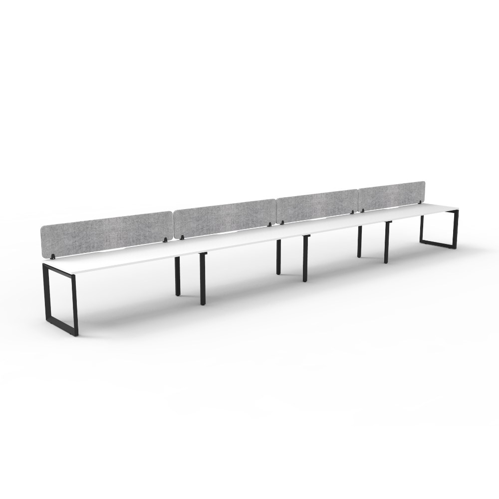 • 4 person single sided workstation with White top and Black Satin frame, Grey Eco screen.