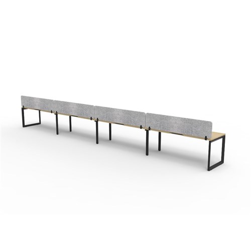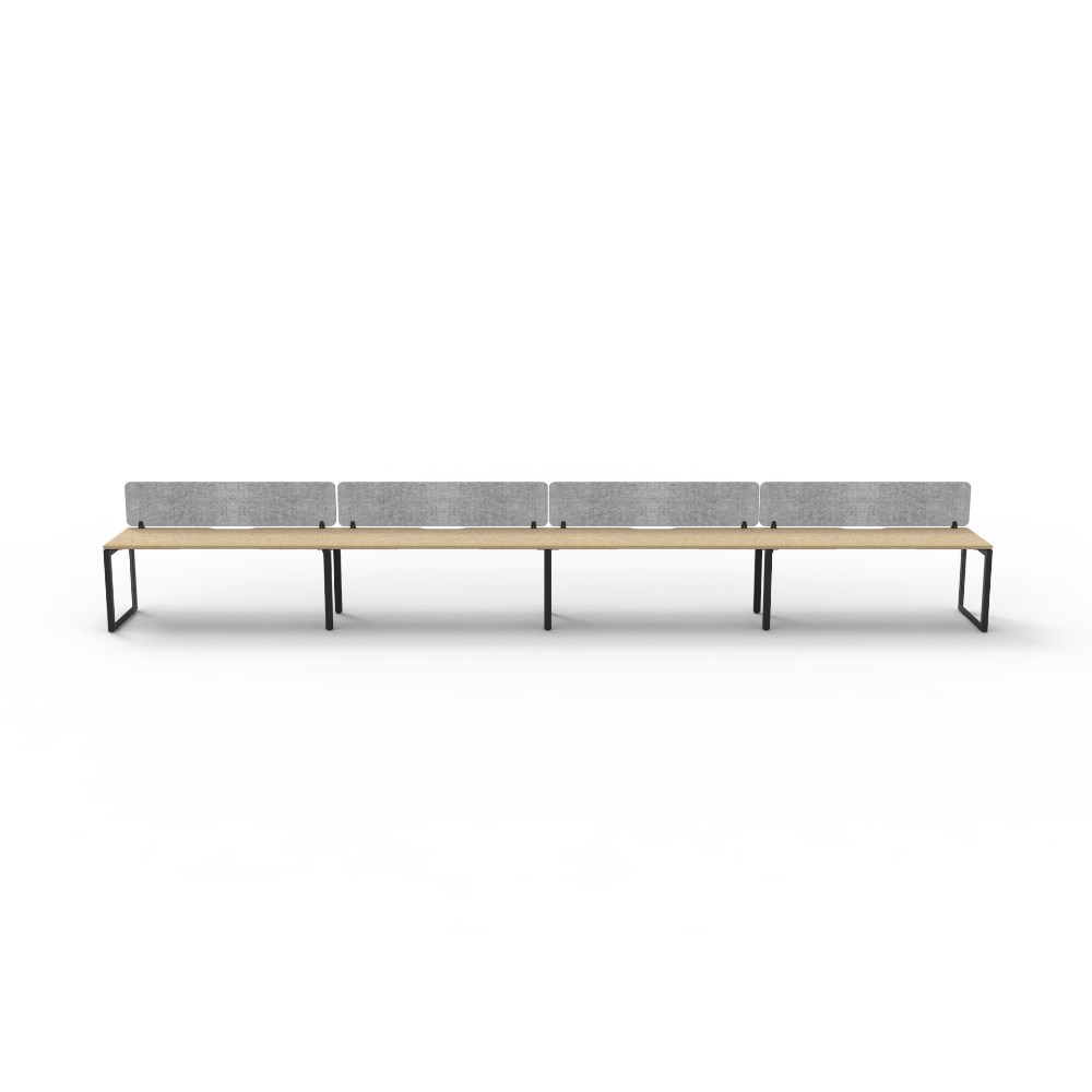• 4 person single sided workstation with Natural Oak top and Black Satin frame, Grey Eco screen.