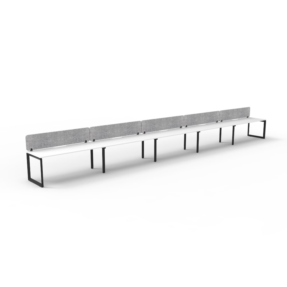• 5 person single sided workstation with White top and Black Satin frame, Grey Eco screen.