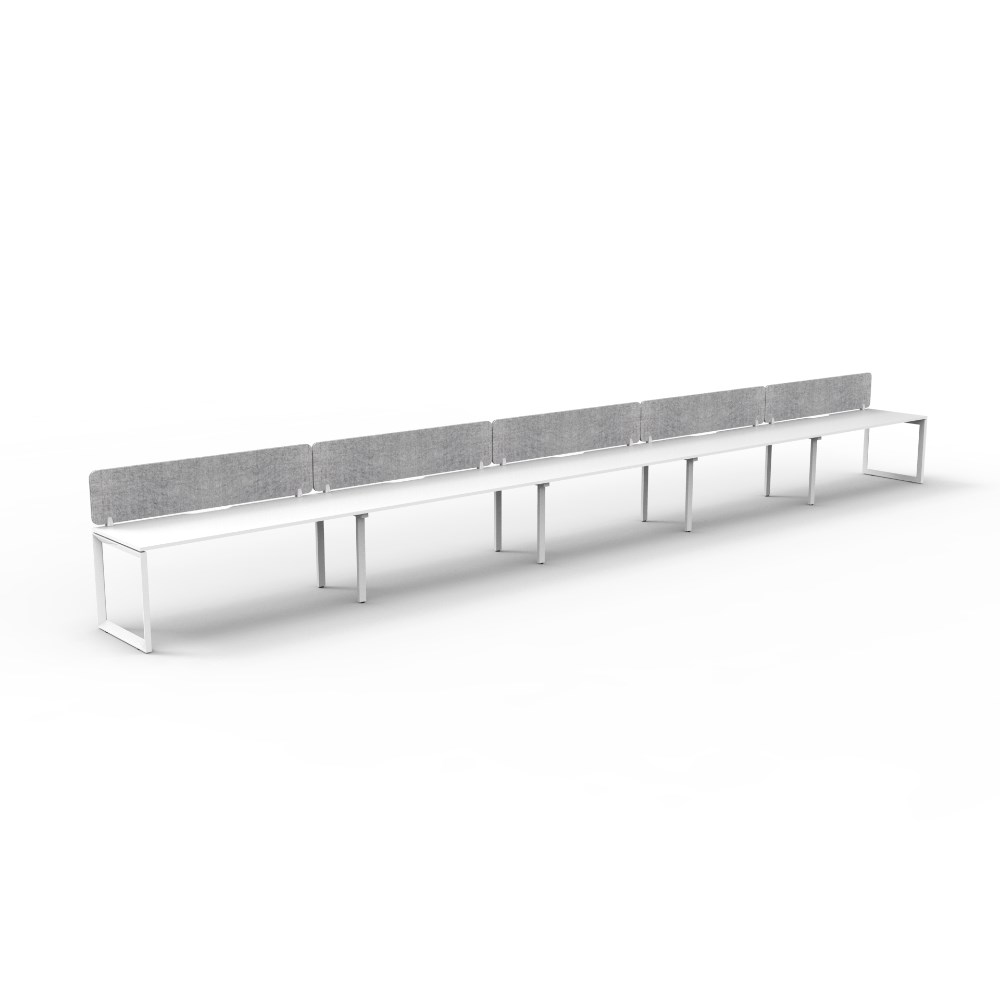 • 5 person single sided workstation with White top and White Satin frame, Grey Eco screen.