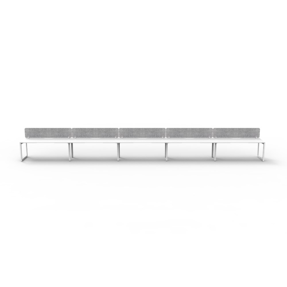 • 5 person single sided workstation with White top and White Satin frame, Grey Eco screen.
