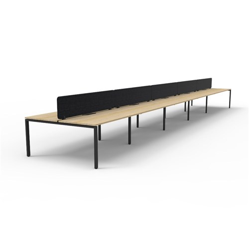• 10 person double sided workstation with Natural Oak top and Black Satin frame, Black Eco screen.
