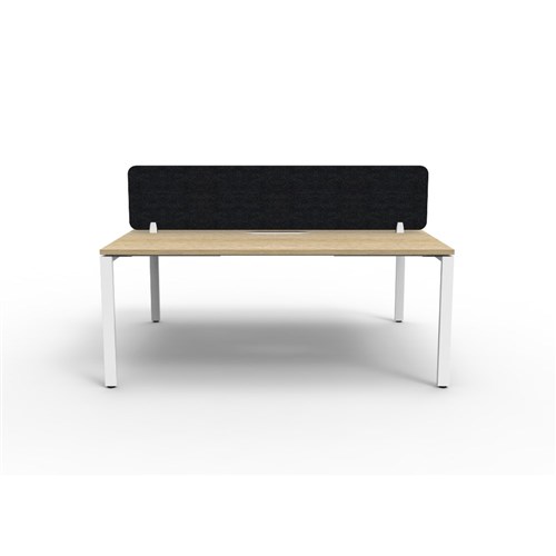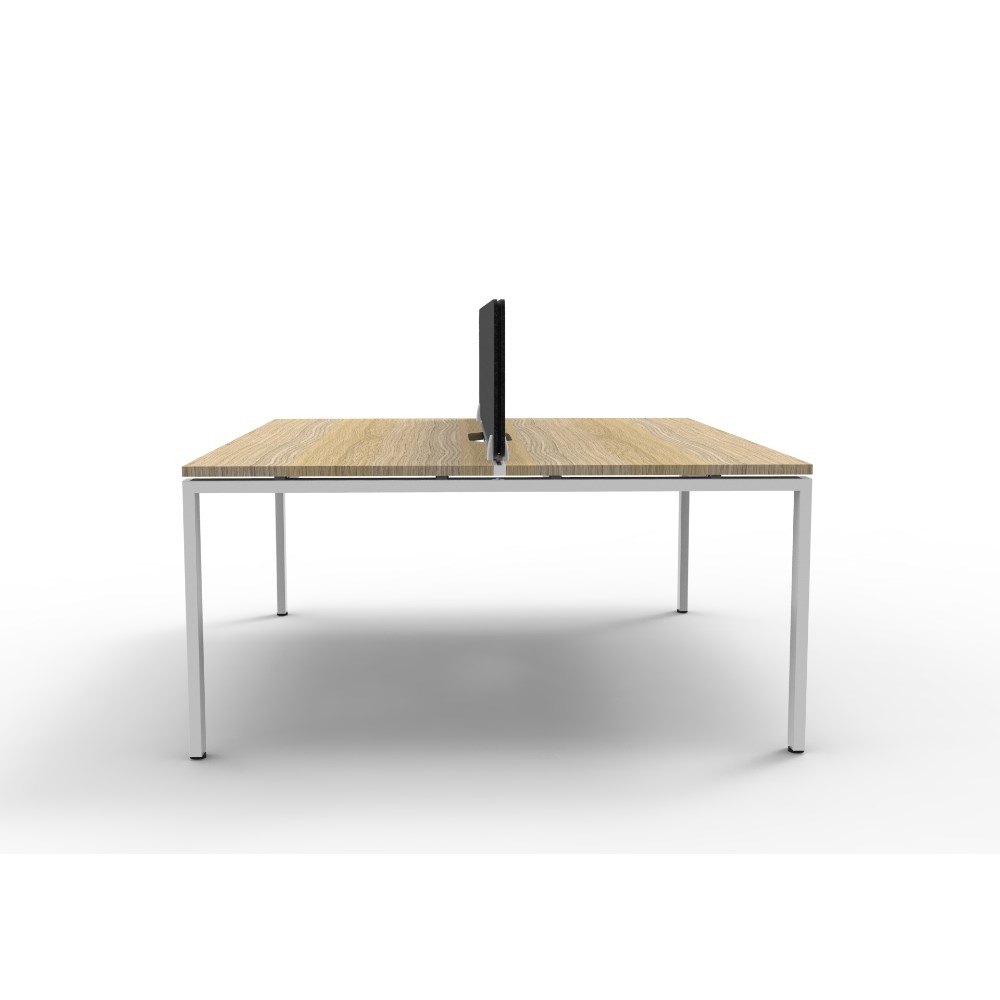• 2 person double sided workstation with Natural Oak top and White Satin frame, Black Eco screen.