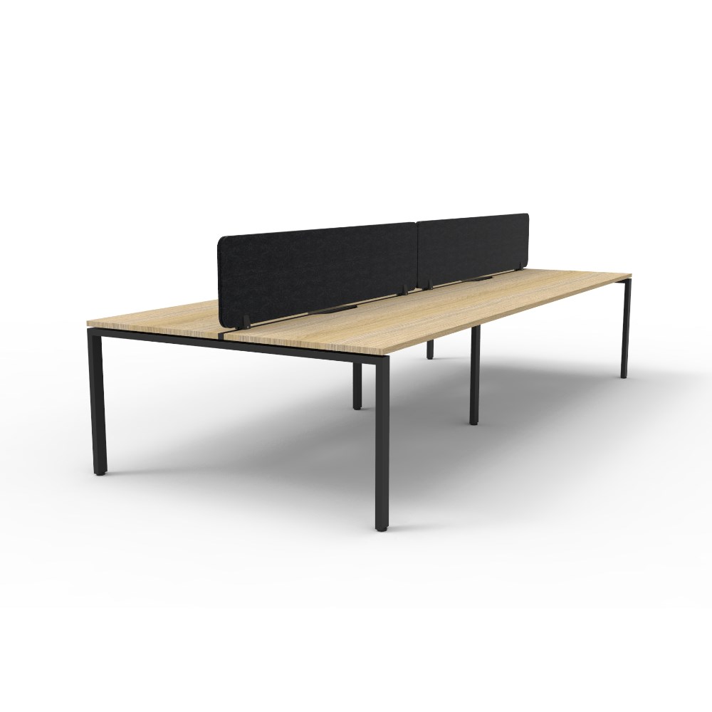 • 4 person double sided workstation with Natural Oak top and Black Satin frame, Black Eco screen.