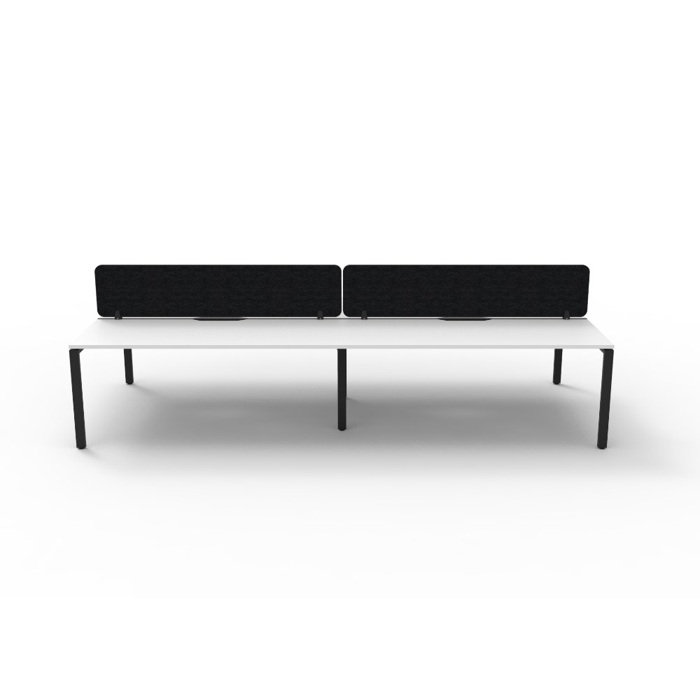 • 4 person double sided workstation with White top and Black Satin frame, Black Eco screen.