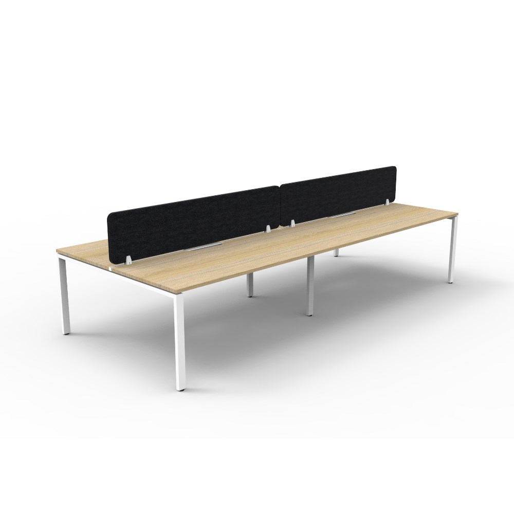 • 4 person double sided workstation with Natural Oak top and White Satin frame, Black Eco screen.