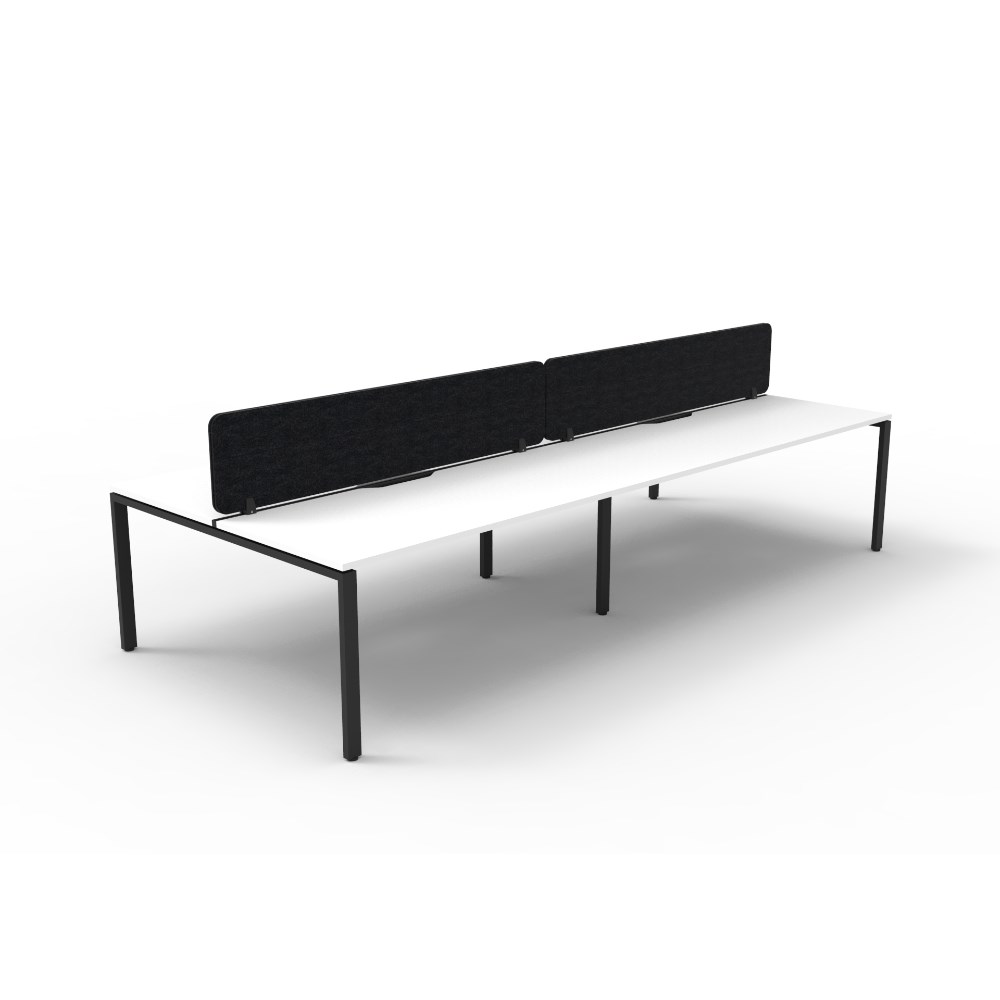 • 4 person double sided workstation with White top and Black Satin frame, Black Eco screen.