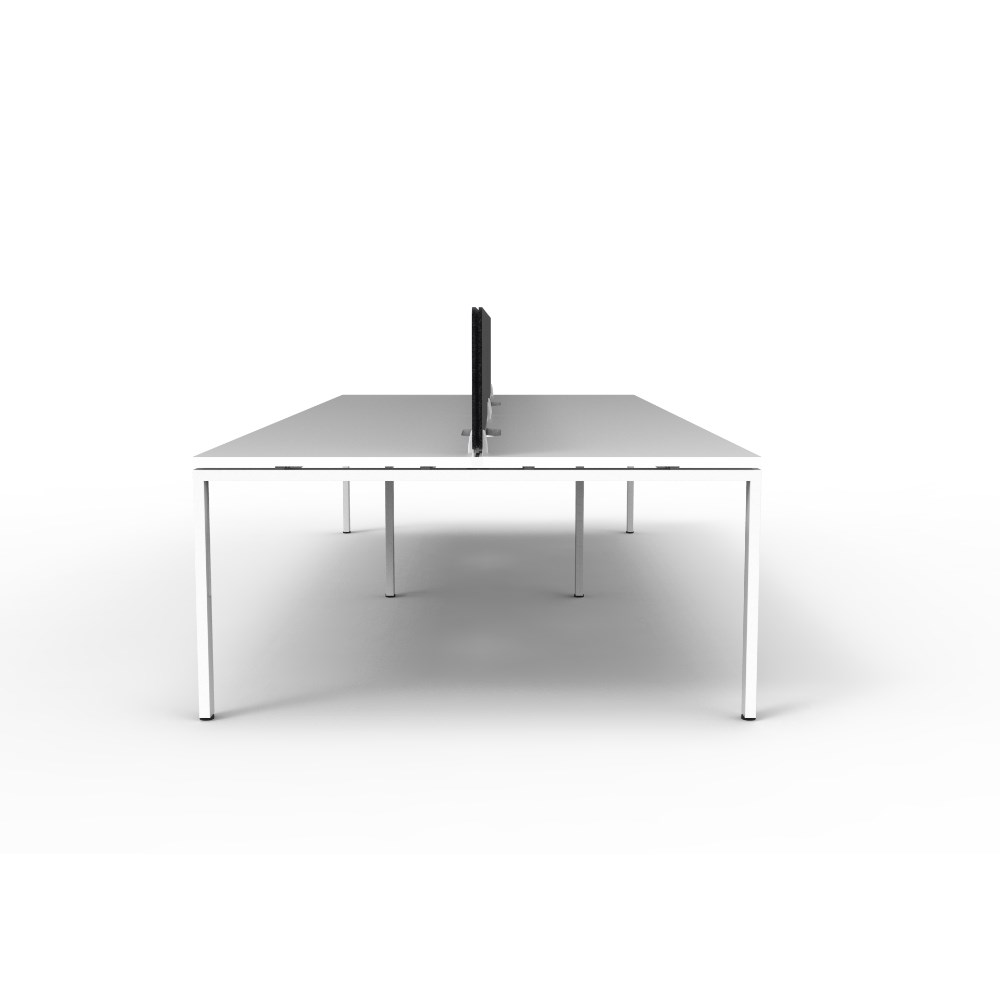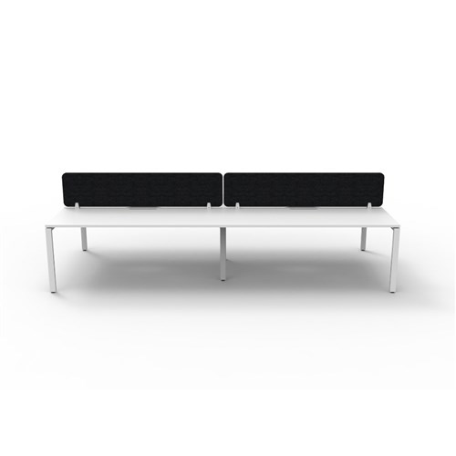 • 4 person double sided workstation with White top and White Satin frame, Black Eco screen.