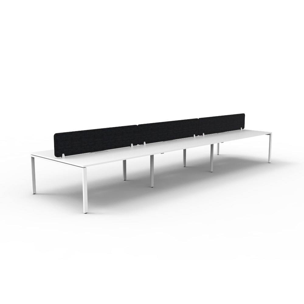 • 6 person double sided workstation with White top and White Satin frame, Black Eco screen.