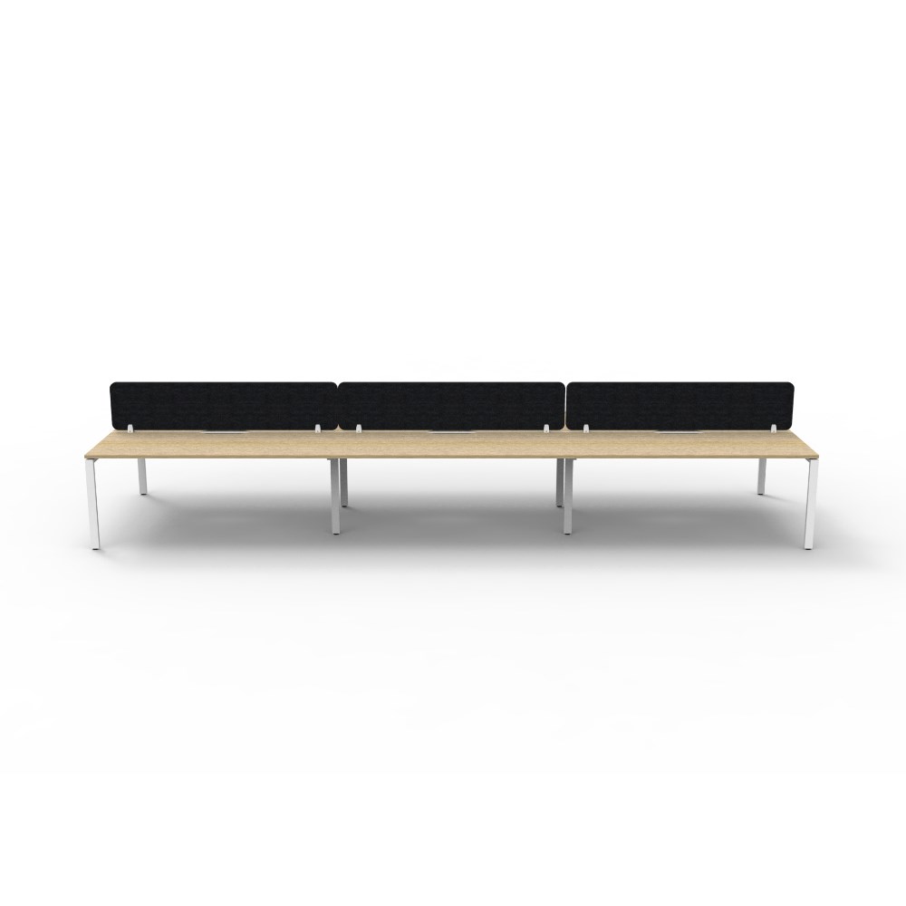 • 6 person double sided workstation with Natural Oak top and White Satin frame, Black Eco screen.