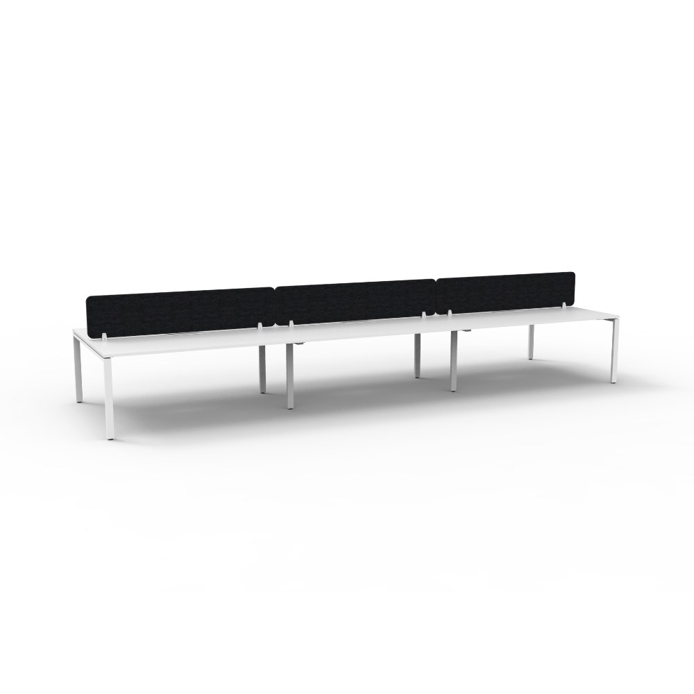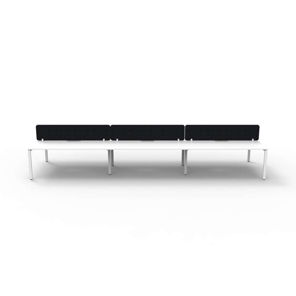 • 6 person double sided workstation with White top and White Satin frame, Black Eco screen.