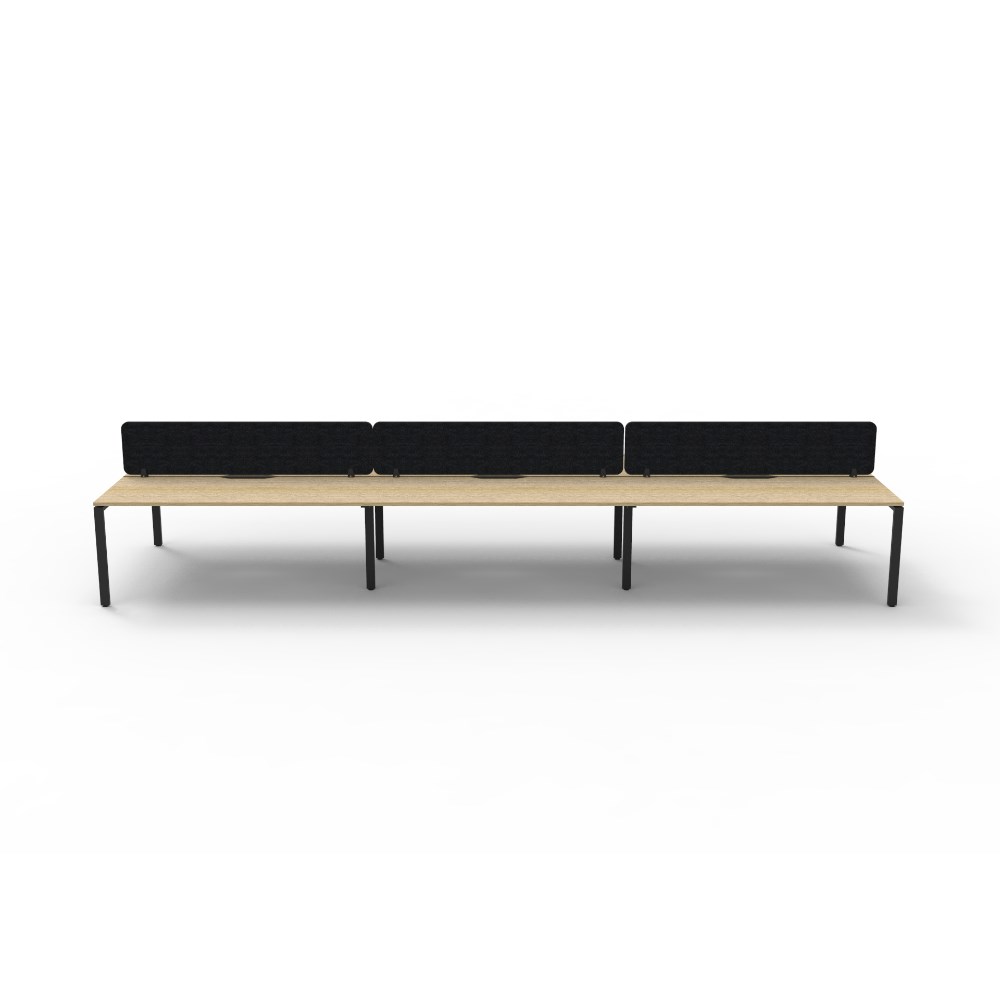 • 6 person double sided workstation with Natural Oak top and Black Satin frame, Black Eco screen.