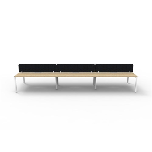• 6 person double sided workstation with Natural Oak top and White Satin frame, Black Eco screen.