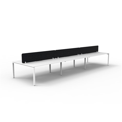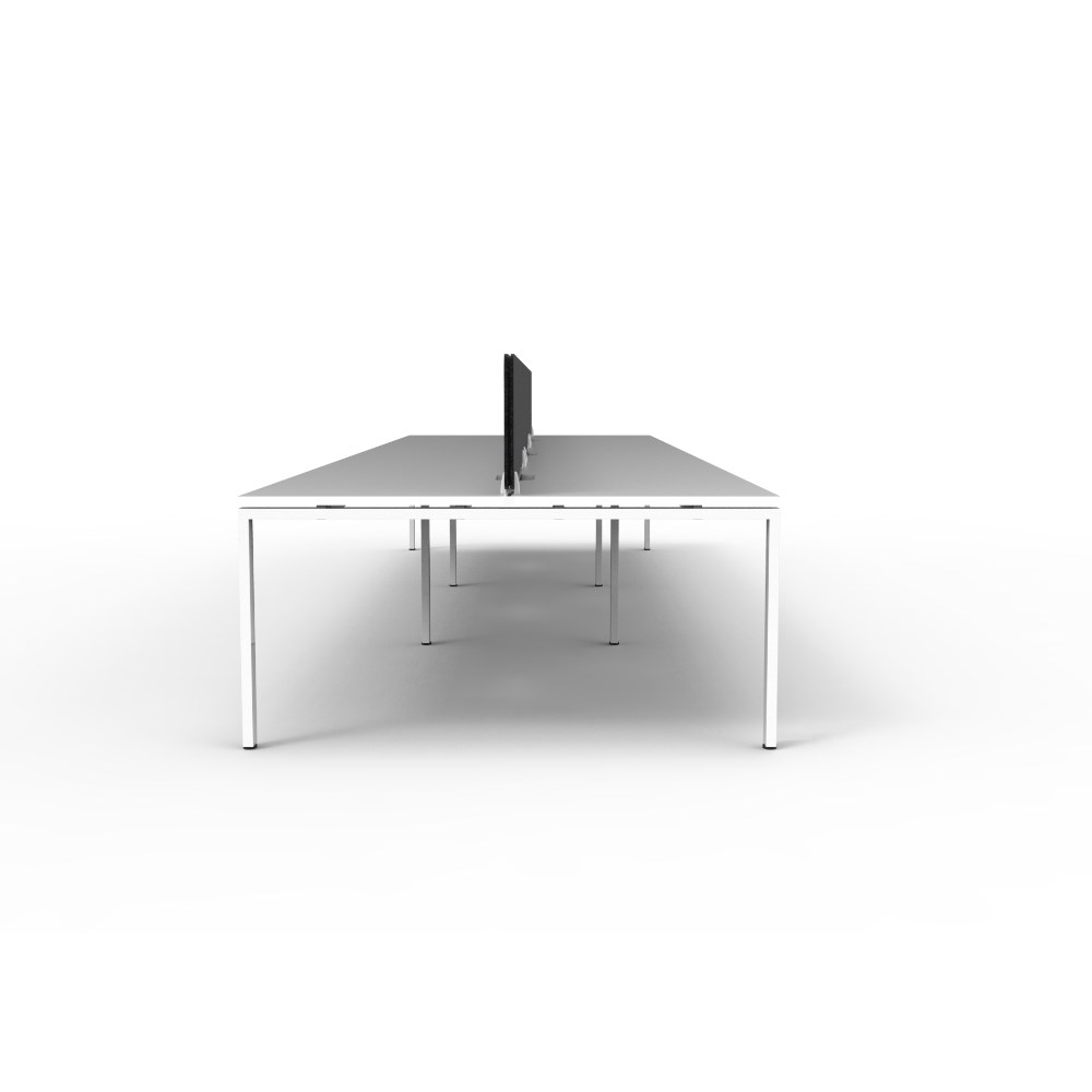 • 6 person double sided workstation with White top and White Satin frame, Black Eco screen.