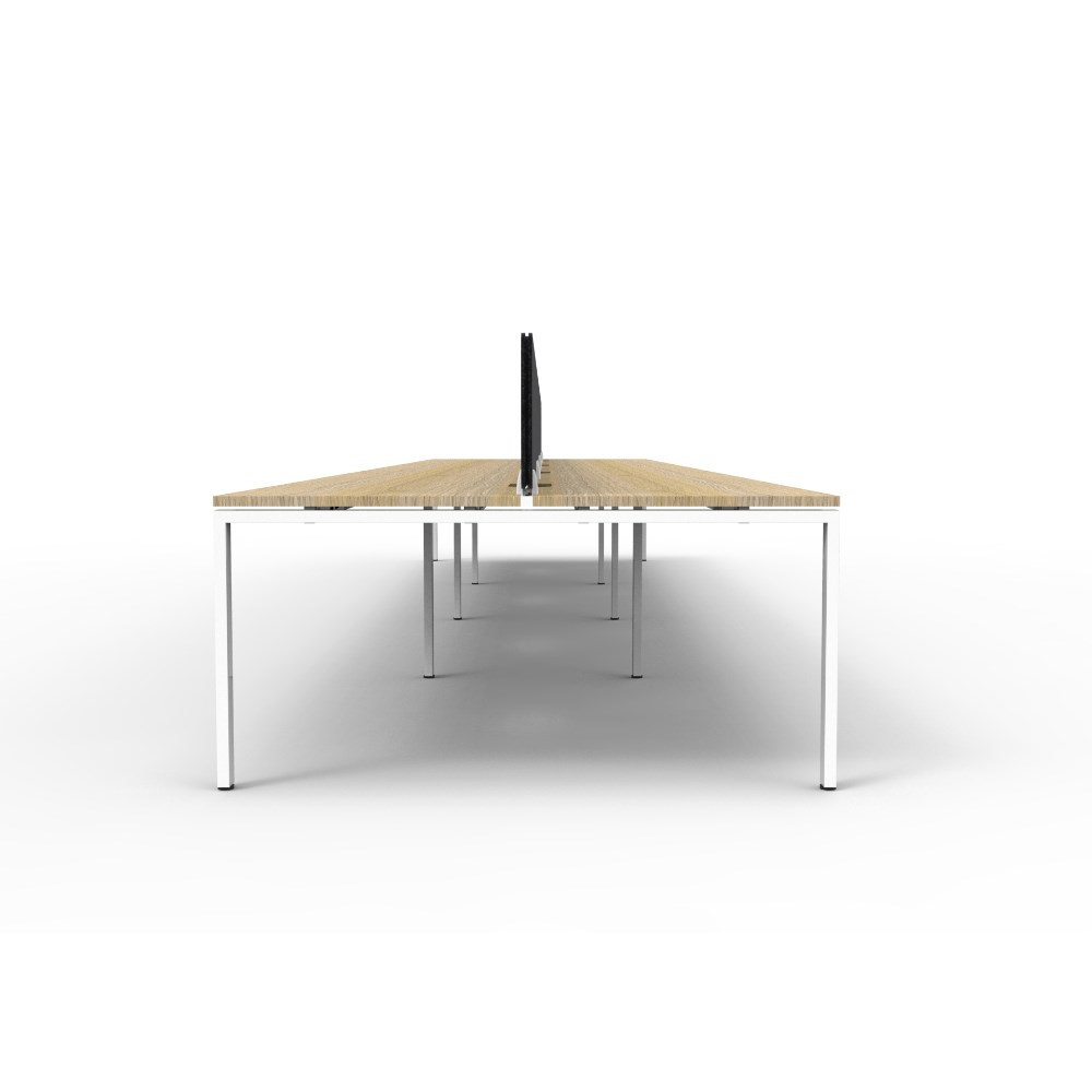 • 8 person double sided workstation with Natural Oak top and White Satin frame, Black Eco screen.