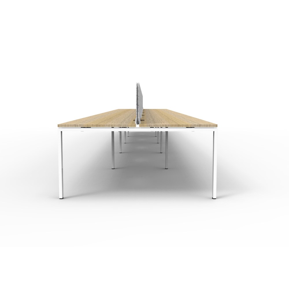 • 10 person double sided workstation with Natural Oak top and White Satin frame, Grey Eco screen.