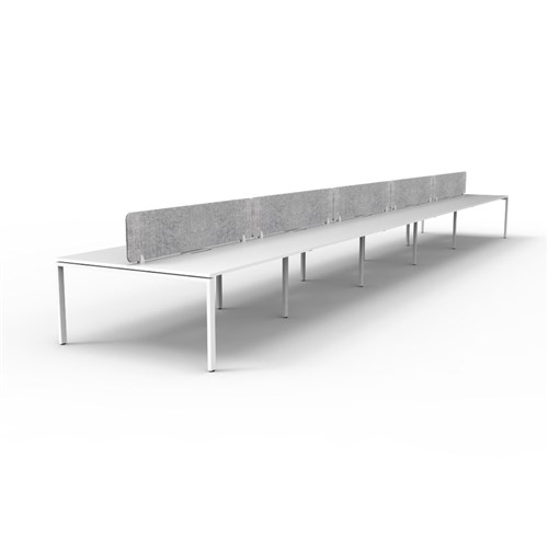 • 10 person double sided workstation with White top and White Satin frame, Grey Eco screen.