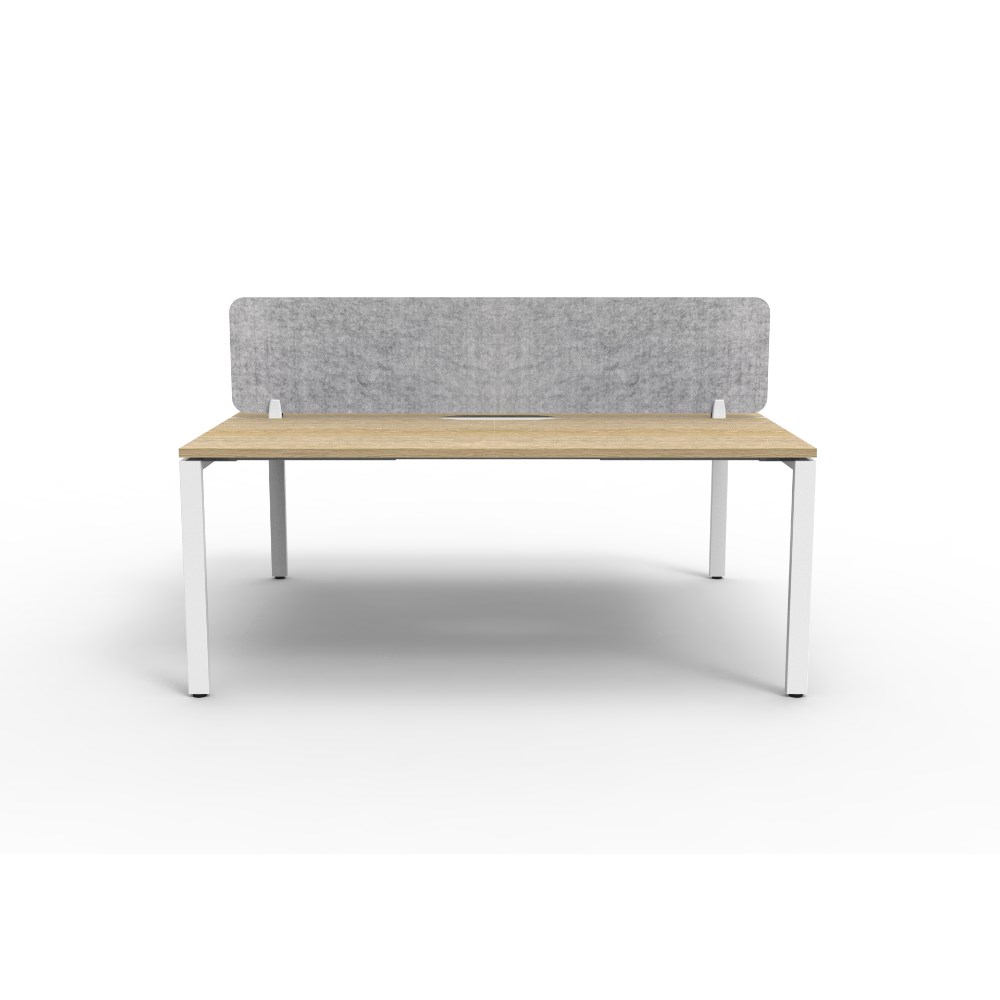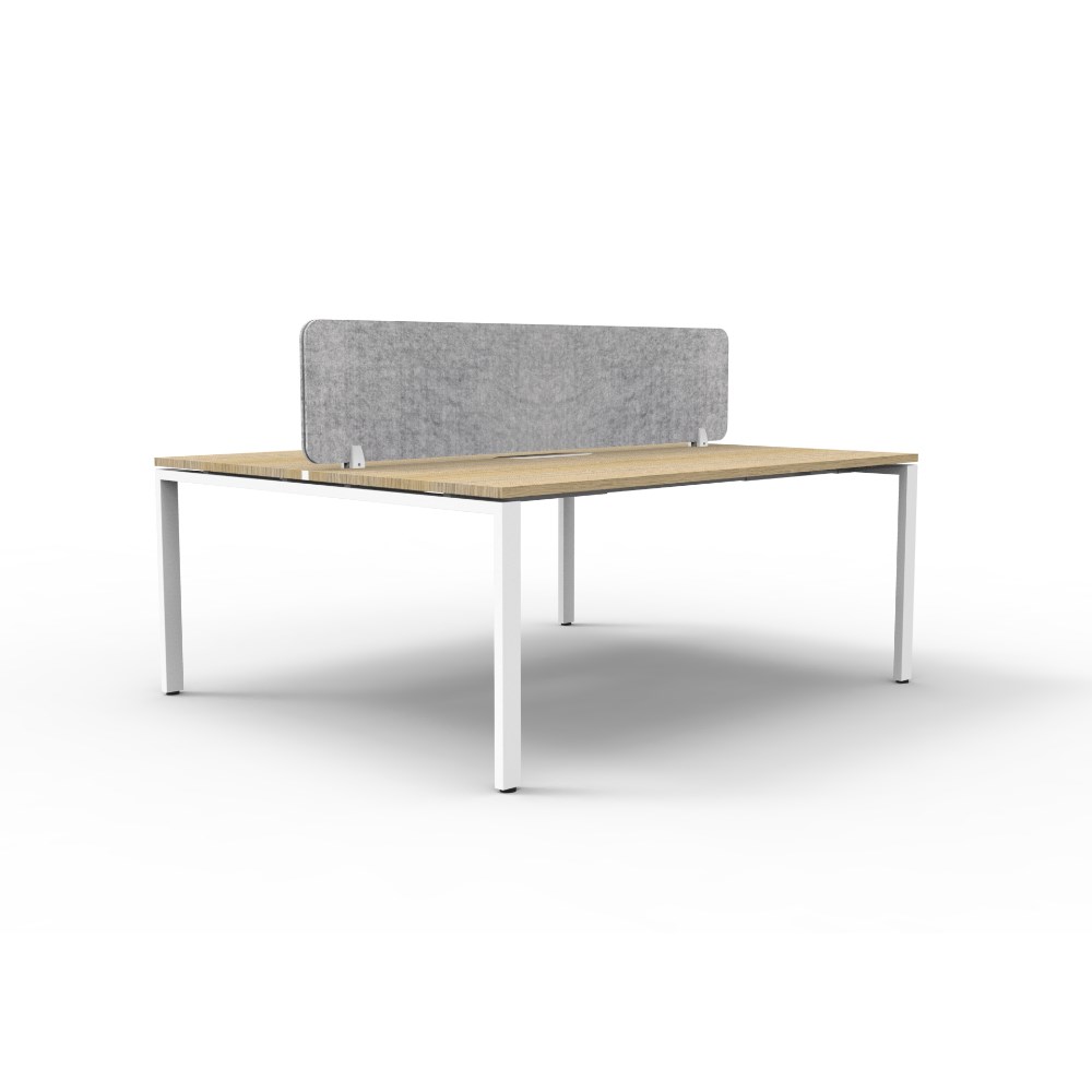 • 2 person double sided workstation with Natural Oak top and White Satin frame, Grey Eco screen.