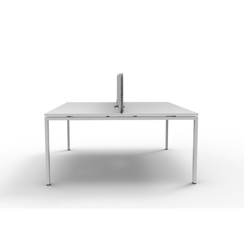 • 2 person double sided workstation with White top and White Satin frame, Grey Eco screen.
