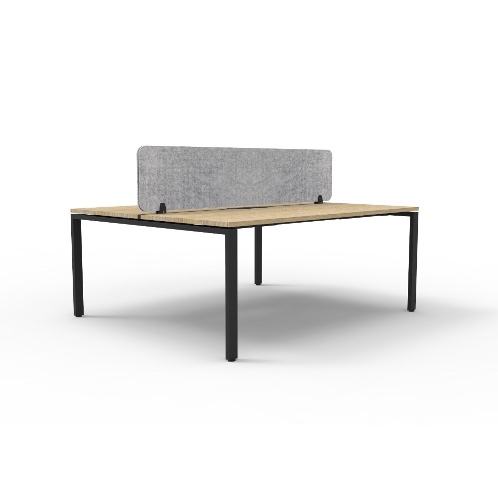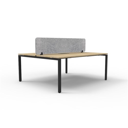 • 2 person double sided workstation with Natural Oak top and Black Satin frame, Grey Eco screen.