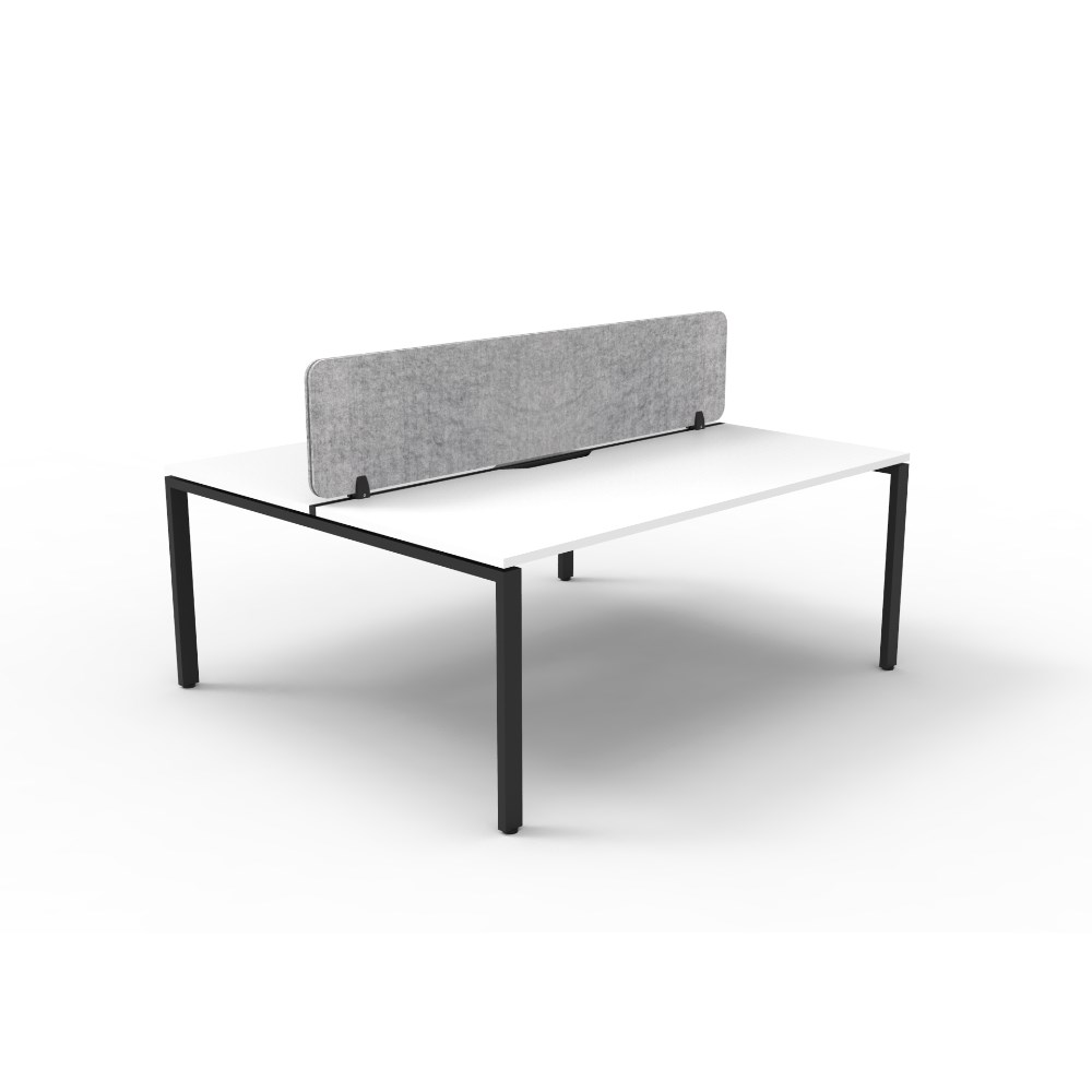 • 2 person double sided workstation with White top and Black Satin frame, Grey Eco screen.
