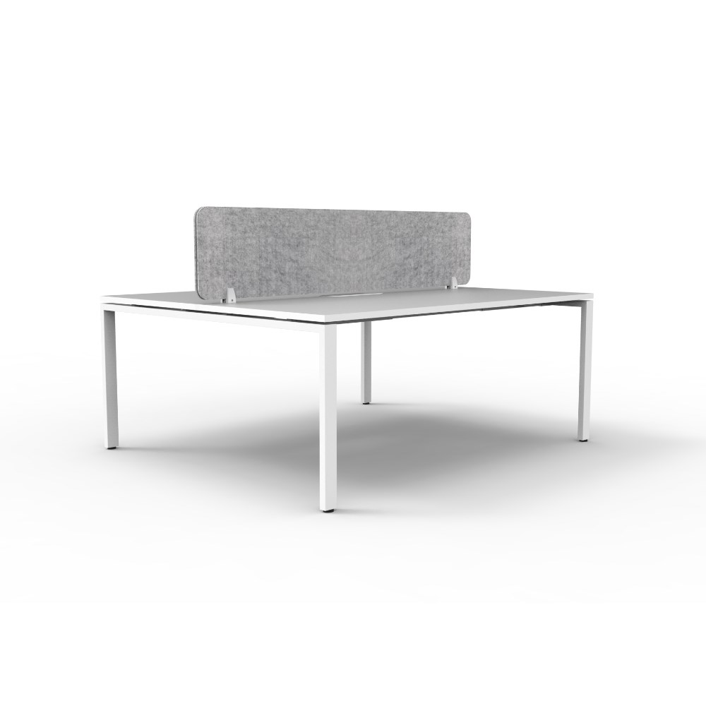 • 2 person double sided workstation with White top and White Satin frame, Grey Eco screen.